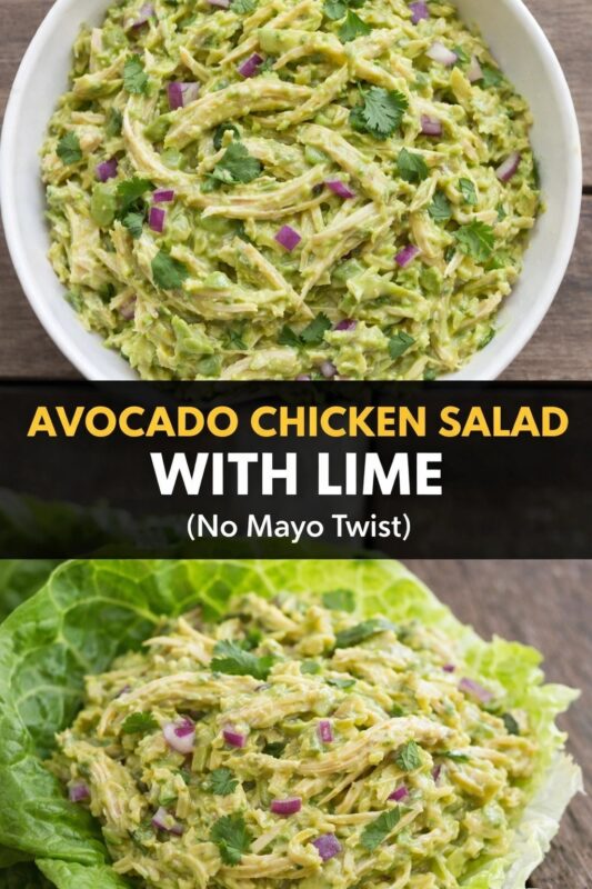 The Avocado Chicken Salad with Lime features a delightful mix of ingredients that not only make it visually appealing but also tantalizing to the taste buds. At its core, this dish combines shredded chicken, which serves as the protein powerhouse, with creamy mashed avocado, providing a rich, velvety texture without the use of mayonnaise.