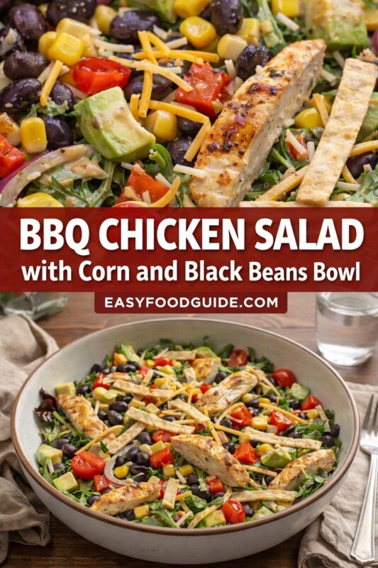 This vibrant BBQ Chicken Salad with Corn and Black Beans showcases grilled chicken, crunchy corn, hearty black beans, and fresh toppings for a quick, high-protein meal. It’s an easy grilled chicken salad that’s perfect for summer dinners and can be enjoyed as a healthy chicken salad bowl anytime.