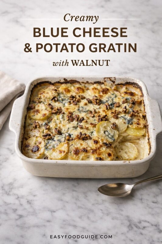 This Blue Cheese and Walnut Potato Gratin is not just a side dish; it’s a centerpiece for your holiday meals. Its rustic presentation in a baking dish invites everyone to dig in, making it a perfect addition to any cozy dining table setting.