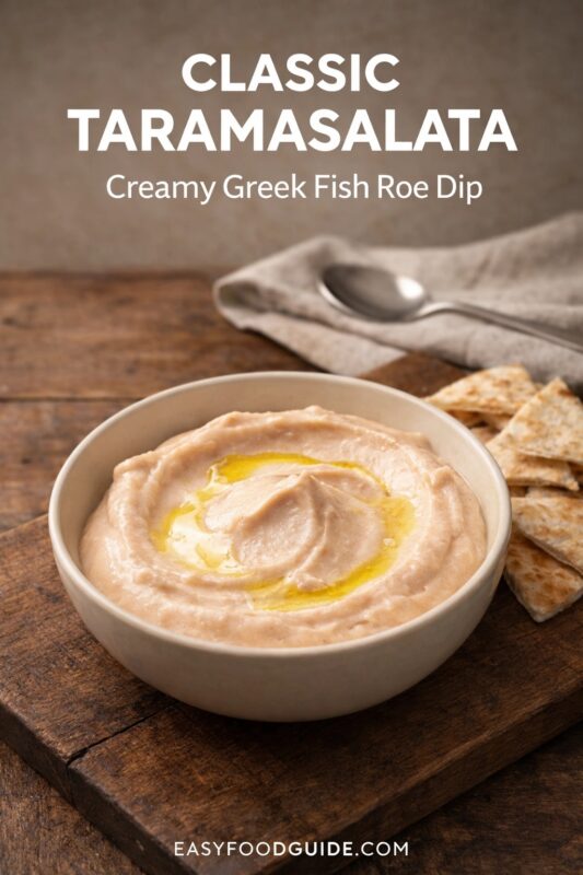 Classic Taramasalata is a creamy, savory Greek dip made by blending cured fish roe (tarama) with soaked stale bread or potatoes, olive oil, lemon juice, and finely grated onion. This traditional Greek Taramosalata offers a rich umami flavor with tangy lemon notes, making it a delightful addition to any meal.