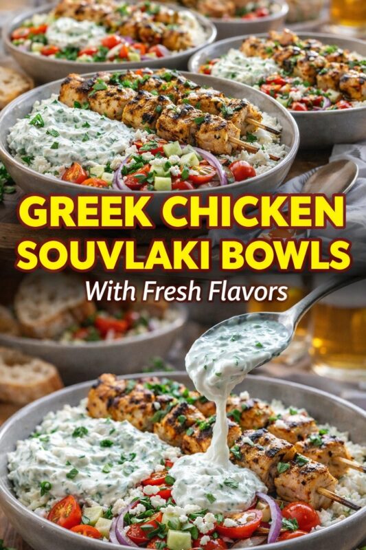Vibrant Presentation of Greek Chicken Souvlaki Bowls