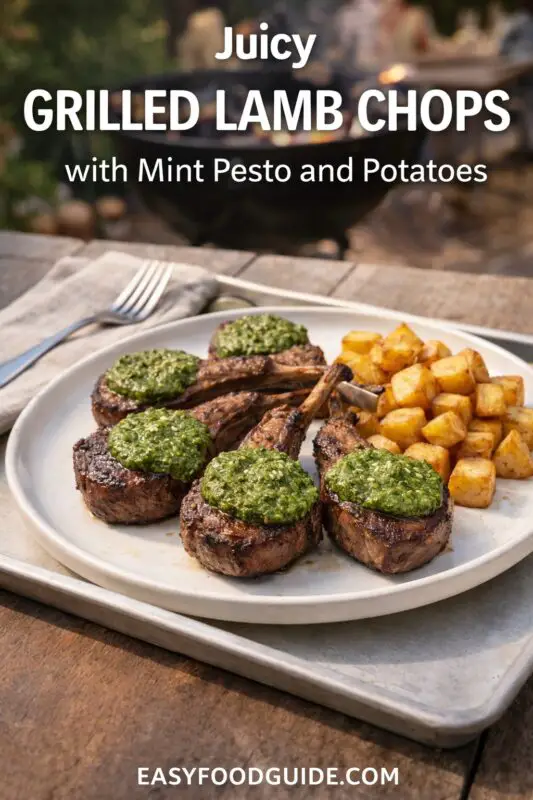 Grilled Lamb Chops with Mint Pesto and Roasted Potatoes is a flavorful, high-protein meal that is perfect for a delicious family dinner. This recipe combines perfectly grilled lamb chops with a fresh mint pesto, complemented by crispy roasted potatoes.