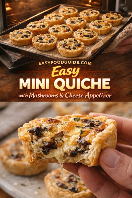 These savory Mini Mushroom and Cheese Quiches are delightful bite-sized appetizers, featuring a buttery crust and creamy egg custard that complements the sautéed mushrooms and melted cheese. They’re perfect for any occasion, whether as a quick breakfast or a brunch item.