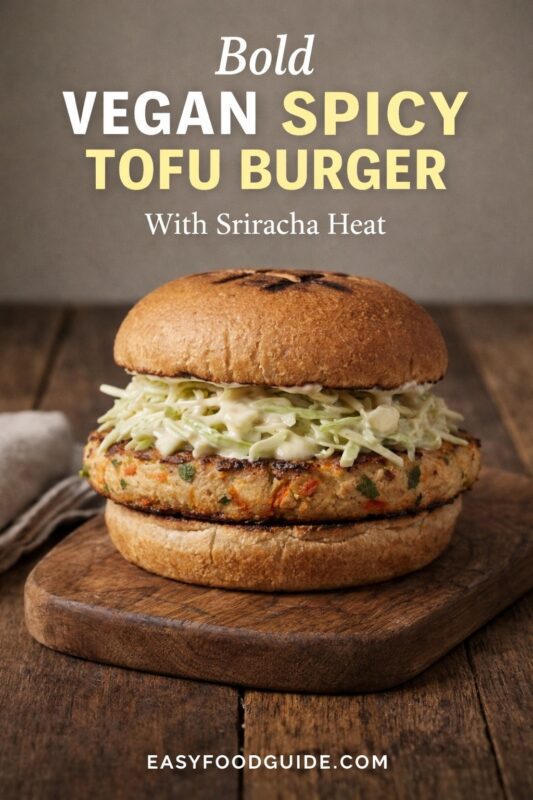 This Vegan Spicy Tofu Burger delivers bold heat from sriracha-infused tofu paired with a crisp cabbage slaw on a whole wheat bun, making it a satisfying plant-based meal. It’s a great option for those looking for healthy dinner recipes or party appetizers healthy.